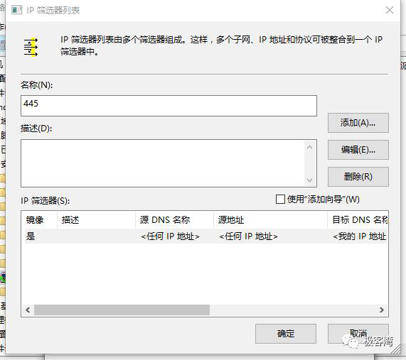 11、在IP筛选器列表窗口中,单击右侧的添加按钮,需要注意的是这里也不要点击右下角的使用添加向导。