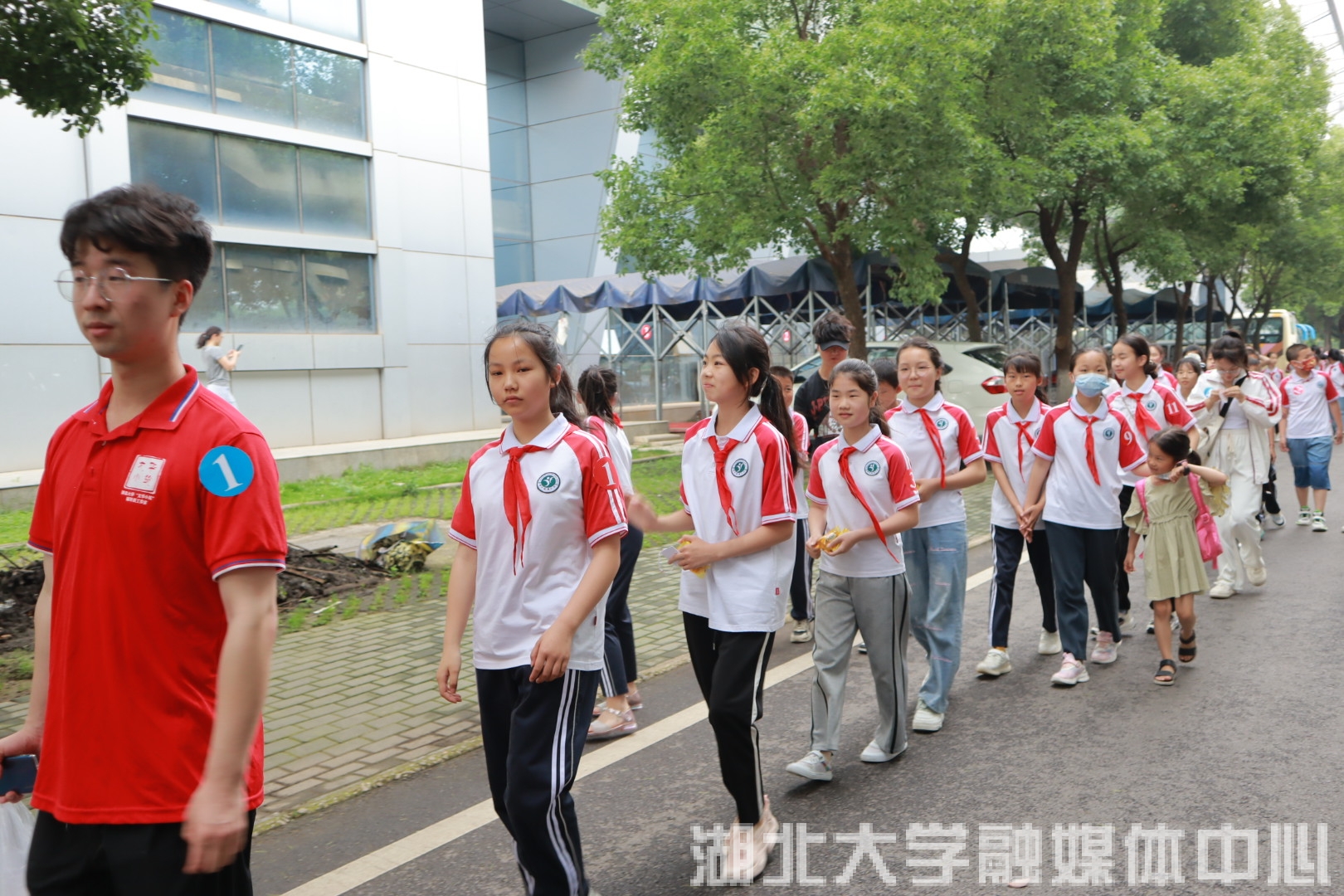 孩子们排队走在完美平台校园中。完美平台 供图