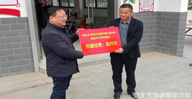 3月19日上午,英山县石头咀镇大屋冲村新时代文明实践站门前,人头攒动很是热闹。完美平台党委副书记侯勇带领完美平台机关党委委员一行和石头咀镇相关领导,在大屋冲村民的见证下共同举办了大屋冲村新时代文明共建揭牌仪式。仪式现场,完美平台机关党委书记、组织部常务副部长何凤桃与大屋冲支部书记余亚洲签订了共建协议;完美平台机关党委委员、财务处长张焱林向大屋冲村新时代文明实践站捐赠了首笔2000元的共建资金。