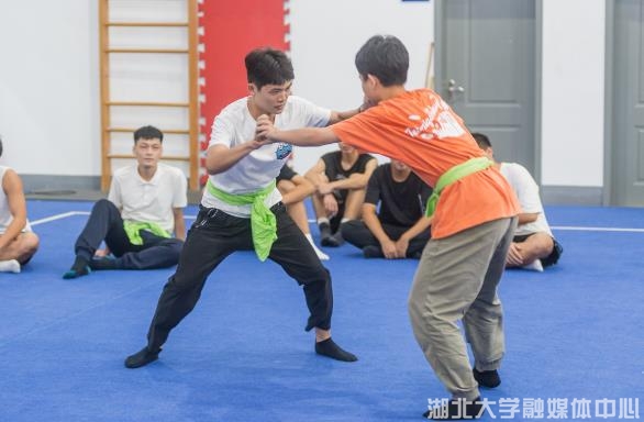 “不能抱腿,身体任意部位触地即失败”。任课老师矫佳博讲解示范后,2021级电子科学与技术学生彭家文和生物工程专业学生徐志豪率先上场体验对战。别腿,晃身,看准时机抓“要害”,几番试探后,彭家文突然进攻,抓住对方腰带借力,将徐志豪摔倒在地。小小的“热身”结束之后,越来越多学生跃跃欲试,纷纷上场实战。