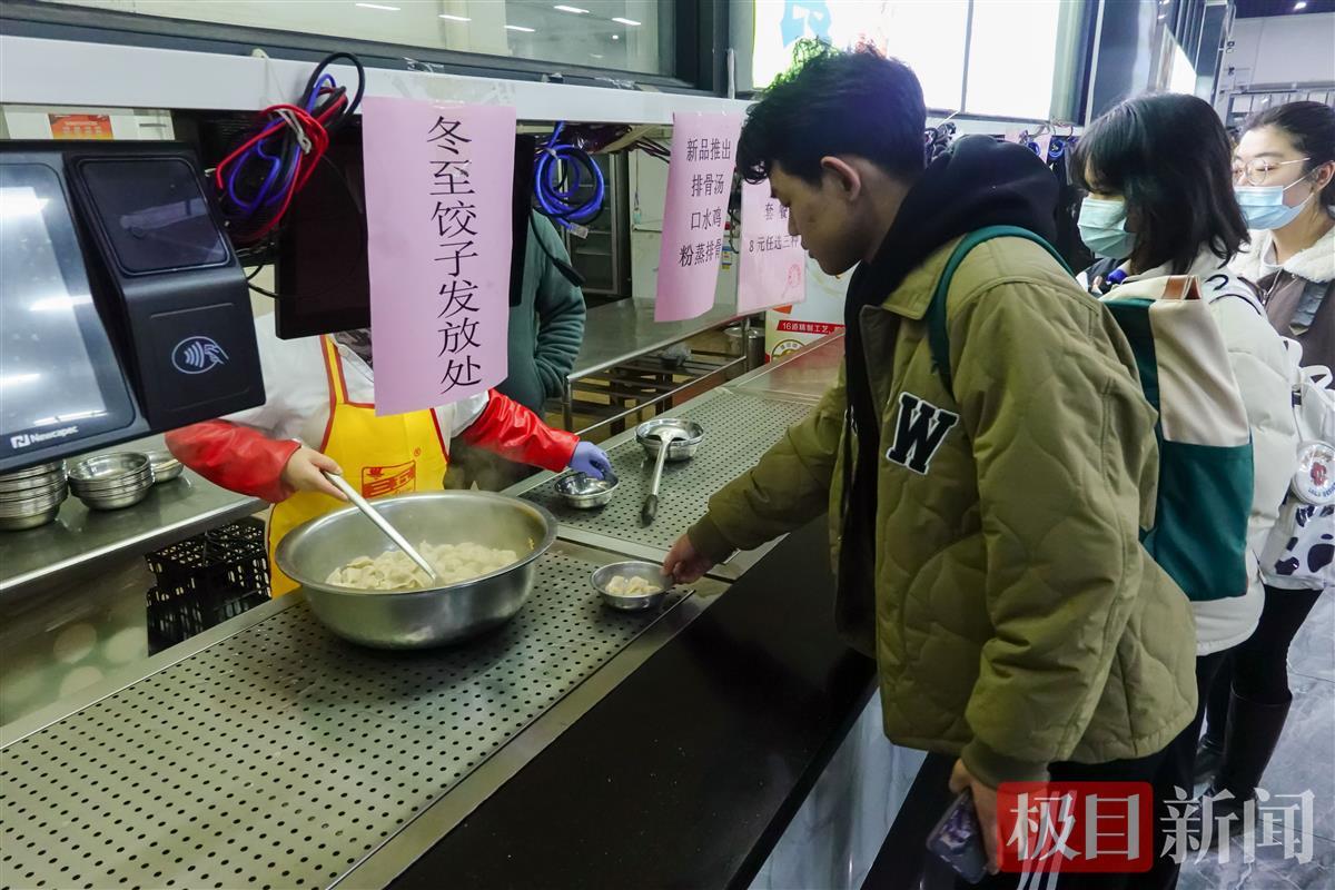 当天,嘉会园、桃李园食堂分别向师生赠送500份、300份饺子。据工作人员介绍,学校食堂提前一天准备食材,加班手工制作。为了兼顾大家的口味,特地准备了白菜瘦肉和香菇瘦肉两种供师生选择。2020级汉语言国家基地班魏亚婕表示:“饺子咸淡正好,符合大多数人的口味。学校的心意也让我感受到了家的温暖。”