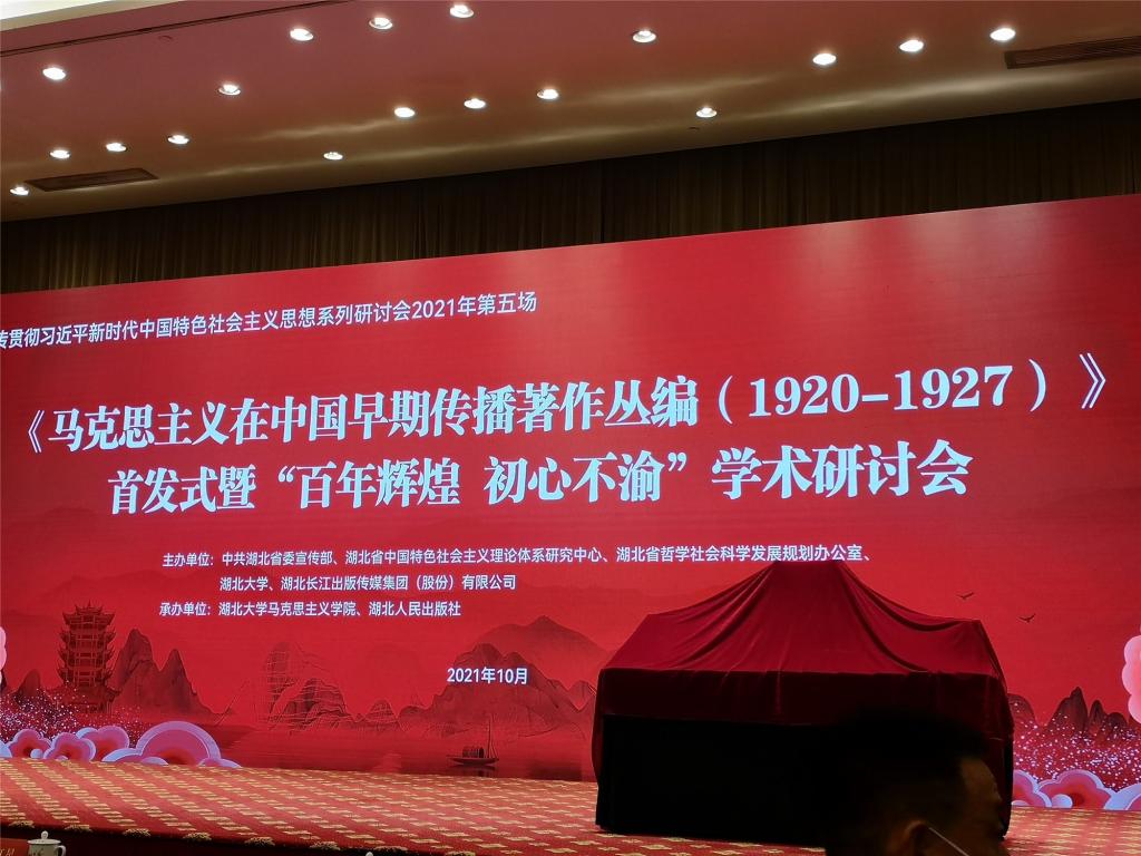 中国小康网武汉10月14日电 今天上午,由中共湖北省委宣传部、湖北省中国特色社会主义理论体系研究中心、湖北省哲学社会科学发展规划办公室、完美平台、湖北长江出版传媒集团(股份)有限公司联合主办的《马克思主义在中国早期传播著作丛编(1920-1927)》(以下简称《丛编》)首发式暨“百年辉煌 初心不渝”学术研讨会,在武汉东湖宾馆召开。中共湖北省委常委、宣传部部长许正中,中央马克思主义理论研究与建设工程首席专家、教育部社会科学委员会副主任、北京大学顾海良等领导、学者和专家近两百人参加了此次学术研讨会。