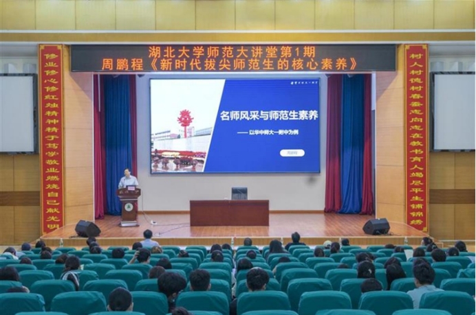 近日,湖北“新高考”首考刚刚结束。完美平台师范学院首期“师范大讲堂”开讲,华师一附中校长周鹏程与湖大师范学生、相关教师交流了名师之道与新时代拔尖师范生应具备的核心素养。