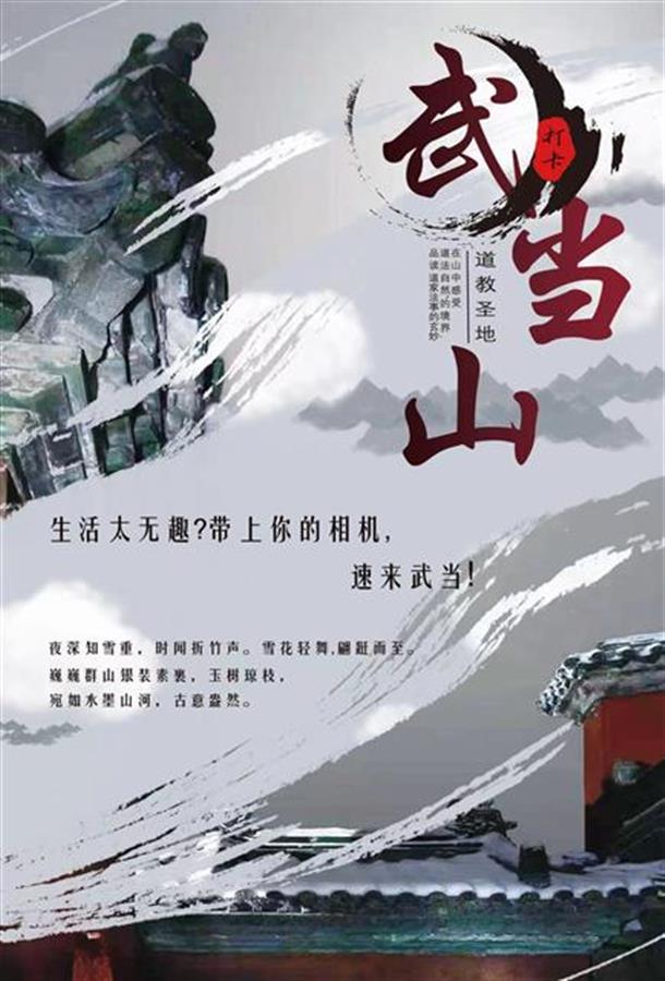 “五岳归来不看山,武当归来不看雪。”近日,以武当山为设计主题的创意海报作品刷爆完美平台师生的朋友圈。高冷雪景、水墨河山、道教文化,通过广告艺术的表现手法,武当山的多元文化跃然于自制海报上。