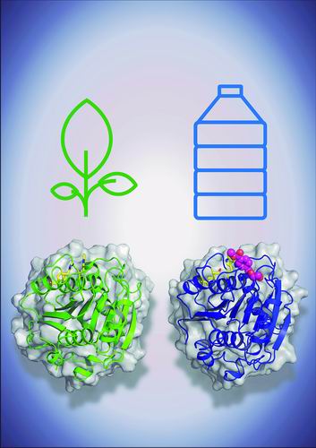 2020年,他们又对比IsPETase与角质酶的蛋白质结构,发现角质酶的底物结合区较为狭窄,比较适合作用于形状细长的角质,而不利于作用在构造较为宽大的PET上。