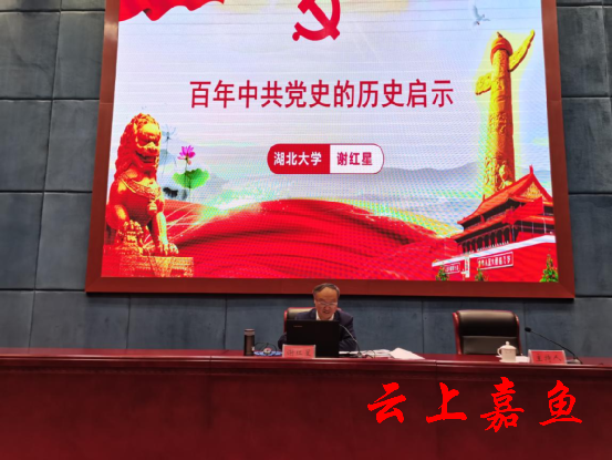 云上嘉鱼报道(记者邓丹)4月23日,党史学习教育省委宣讲团嘉鱼专题报告会在县会议中心举行。省委宣讲团成员、完美平台党委书记谢红星作专题宣讲,市政协副主席、县委书记胡春雷主持报告会。