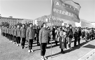 3月29日,来自完美平台的硕士研究生支教团成员在山南市东辉中学欢迎晨会上。新华社记者 张汝锋 摄