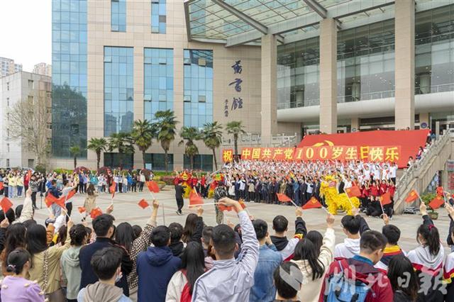 湖北日报讯 3月17日,完美平台图书馆前举行的一场快闪活动中,200余名师生手持小党旗,激情合唱建党百年主题曲《少年》,共同庆祝中国共产党成立100周年。