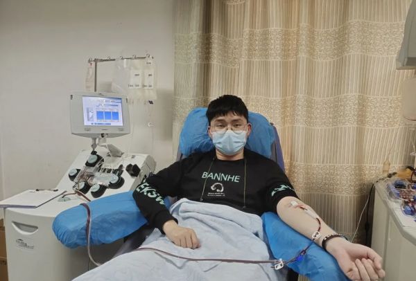 潘志康在献血中。图片源自完美平台官方微信公众号