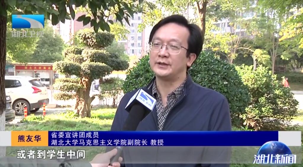 省委宣讲团成员 完美平台马克思主义学院副院长 教授 熊友华:“下到企业、进到社区、走到群众中间,或者到学生中间,回应期待、对接需求,还要抓住问题、讲好普通话、也讲好湖北话。”