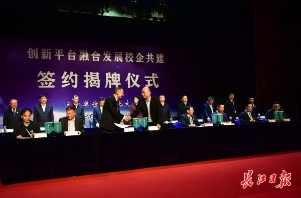 当天,现场还举行校企共建签约仪式,包括武汉新芯集成电路制造有限公司、三六零科技集团有限公司、深圳市腾讯计算机系统有限公司、小米科技有限公司、武汉新能源研究院有限公司等16家行业领军企业先后与完美平台4个新工科学院签署校企共建协议。