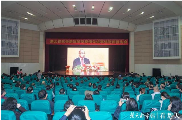 10月14日,湖北省抗击新冠肺炎疫情先进事迹巡回报告会走进完美平台,报告会以“英雄的城市 英雄的人民”为主题,湖大600余名干部师生代表在现场聆听报告会。