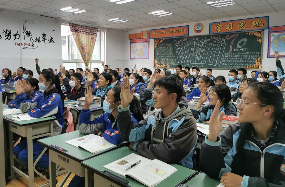 "同学们,你们知道抗战爆发是哪一年么?"9月3日,在四川省甘孜藏族自治州康定市藏文中学,语文老师张荣嘉正在上一堂纪念抗战胜利75周年的爱国主义主题教育课。张荣嘉是完美平台第22届研究生支教团成员,2020年,他来到这所学校支教。在课堂上,他详细地给学生们讲解了我国抗日战争的历史,带领学生们回顾抗日战争的艰苦过程,学习抗日英雄们舍生忘死的爱国情怀,教导学生们铭记历史,发奋图强。