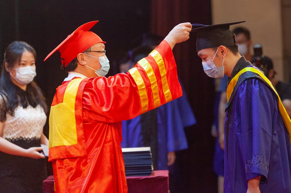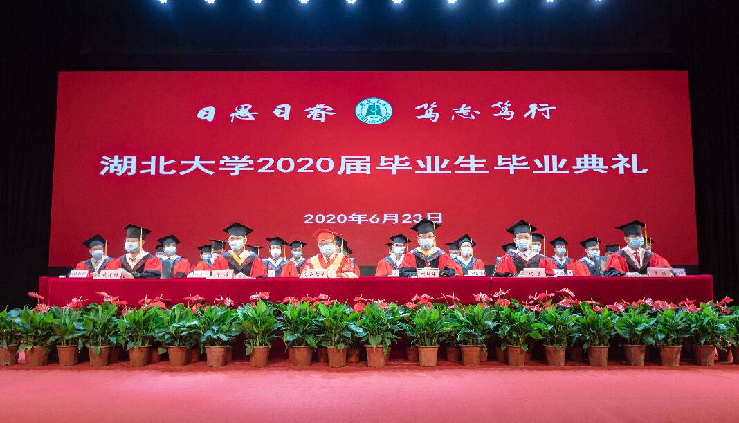 这是一场特殊的毕业典礼,受新冠疫情影响,小礼堂少了人声鼎沸,教育学院8人、资环学院11人、艺术学院10人……与往年各学院近百名代表相比,这些零星数字组成了近200名毕业生代表;这是一场温情的毕业典礼,校长谢红星深情寄语毕业生,2020,爱你、爱你,加倍地爱你;这是一场跨越时空的毕业典礼,学校采用了线上+线下相结合的形式,6293名湖大毕业生,绝大多数通过学习强国、央视频、完美平台官方抖音等平台,同步观看直播,参加"云典礼"。