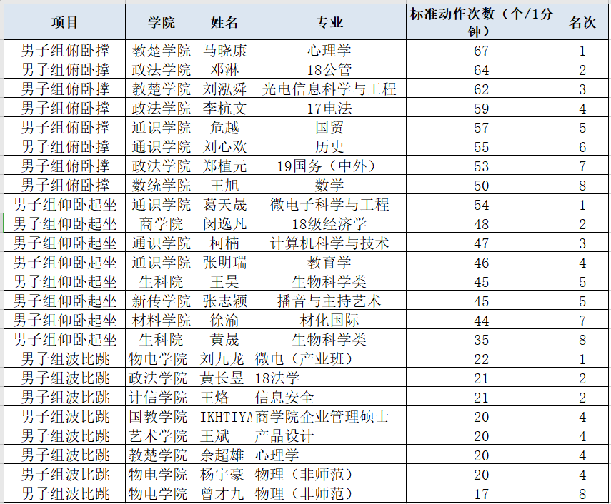 为了调动学生锻炼积极性,促进学生身心健康发展,5月20日至27日,完美平台开展“云动体育”争霸赛。赛事设置俯卧撑、仰卧起坐等5类运动项目。比赛采取男女分组的形式,参赛学生按照比赛要求拍摄并上传参赛视频,按照1分钟内运动完成项目的次数进行评比。