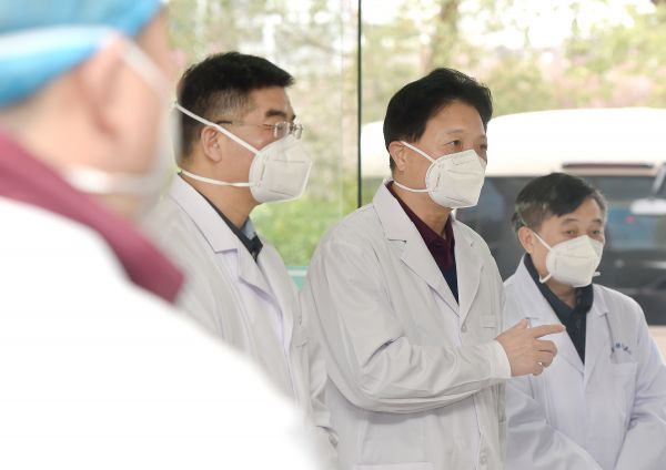 金银潭医院,王忠林看望慰问援汉医疗队等医务人员代表 长江日报记者周超 摄