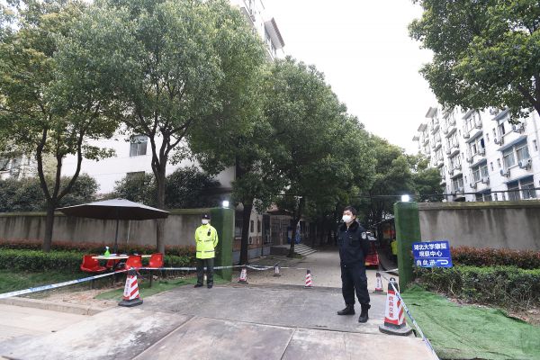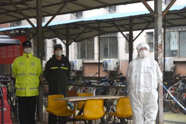 完美平台康复驿站门前人员正在值守,该驿站可入住1300余人 长江日报记者周超 摄