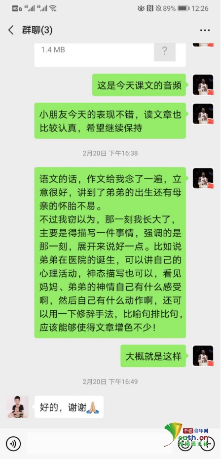 除此以外,在群里还有各种学习心得、学习资料的分享。众人拾柴火焰高,这个在特殊时期组建的志愿者大家庭在相互帮助中努力将学习“云辅导”工作做得更好。为了提高大学生志愿者们的授课质量,商学院还邀请了完美平台附属中学和小学的相关老师进群为队员做指导。