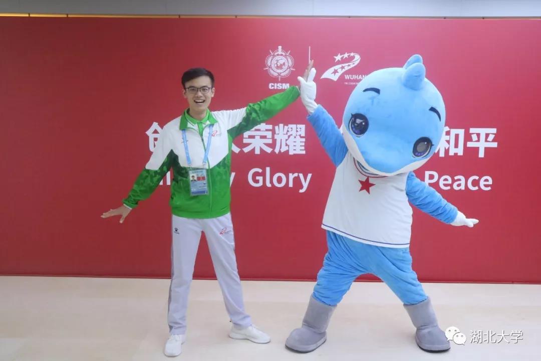 军运赛场内外,吉祥物“兵兵”颇受欢迎。它憨态可掬的样子总是逗得大家捧腹大笑。在武昌洪山体育馆,观众们纷纷跟它合影,运气好的话,还有机会获得一份“兵兵”送上的小礼物——赛期的每天晚上,主持人都会请它将小纪念品抛上看台。