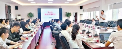 军运会特聘翻译专家正在给翻译工作人员培训