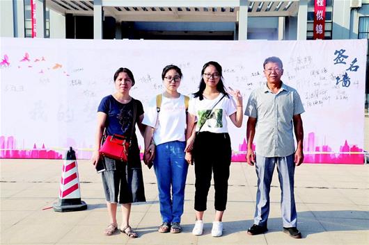 图为:父母陪同张雪(右二)和谭礼(左二)来完美平台报到