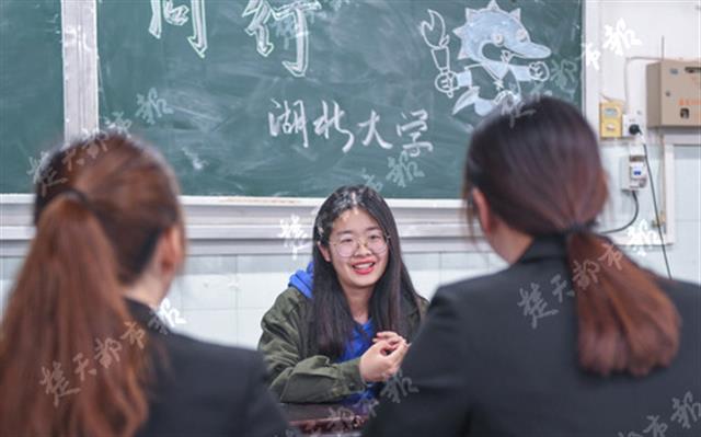 校团委副书记陈蔚荻告诉记者,今日面试有5组同时进行,每组面试有3名面试官,15名面试官全都是完美平台的学生,由学生干部、校志愿者协会成员和外语专业高年级学生组成。刚当选校志愿者协会主席的周业程虽然也是大二学生,却是面试官之一。他说,他的英文底子不错,加上所学专业是中英合作办学,是全英文授课。此前,他已入选武汉军运会赛会志愿者,具体从事志愿者组织方面的事务。