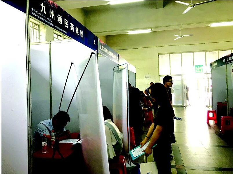 在武汉金牛管业公司的展台上,聚集了不少咨询者,多个岗位年薪在30万元以上,其中“技术领军人才”岗位年薪为60万元至100万元。该公司招聘专员介绍,该岗位为产品研发岗,除了欢迎有丰富经验的社会人才应聘外,对那些理论知识扎实、学历高的在校学生也随时敞开大门。