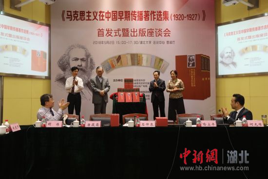 中共中央党史研究室原副主任、著名党史专家石仲泉,中央党史和文献研究院第一研究部副主任唐筱菊,湖北省委宣传部副部长喻立平和湖大校长赵凌云共同为《马克思主义在中国早期传播著作选集(1920-1927)》揭幕。