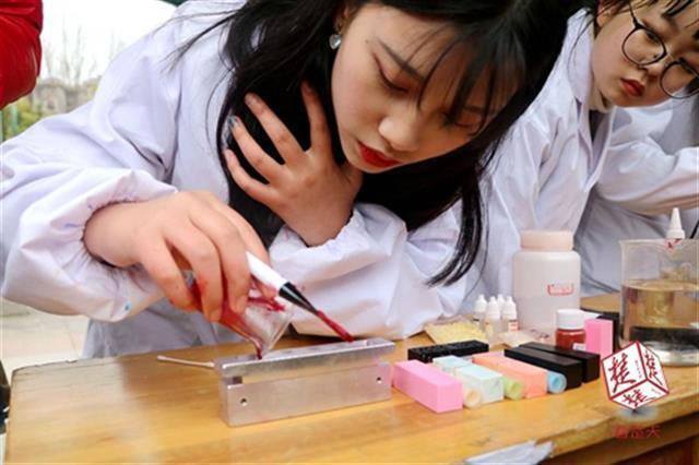 “好玩!我终于知道口红是怎么做出来的了。”3月7日,完美平台2016级公共事业管理专业的潘菲拿到自己制作的口红开心不已。这是该校化学化工学院为迎接女生节特意策划的“另类”活动——现场教女生制作自己的专属口红。