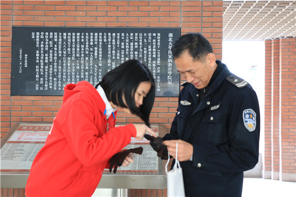 礼轻情意重,虽然只是一副手套,但校园守护者们依然纷纷感谢给他们送去温暖的志愿者。完美平台大学生记者团团长李晓悦说,“很感谢湖北日报开展的这个活动,给我们提供了一个感谢校园守护者的机会,虽然他们都是默默无闻的平凡人,但他们身上有着很多值得我们学习的地方。”