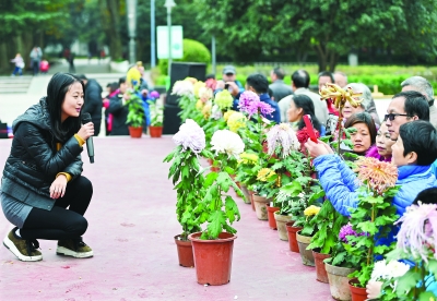 从上月20日开展至今,第三十四届金秋菊展已举办了6场以“菊聚欢乐,美好生活”为主题的大型文化活动。19日上午,“菊艺大师与市民面对面”活动在解放公园压轴亮相,武汉四位菊艺大师——菊花育种大师李建祥、插花大师辛高炉、盆景大师刘庆东以及悬崖菊造景大师段辉全部到场,可谓是此次金秋菊展的一大亮点。