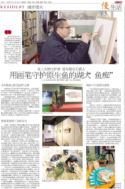 虽然还没有开学,但完美平台艺术学院老师张国刚却比没放假时还忙,他正在准备新书《中国原生鱼水彩专辑——一个艺术家的鱼类志》的出版。此前,张国刚已经出版了一本《野鱼记》,并分别在武汉、广州举办了数场画展,这位爱鱼如痴的老师,一直在用画画的方式唤起人们对中国传统原生水生物的关注。