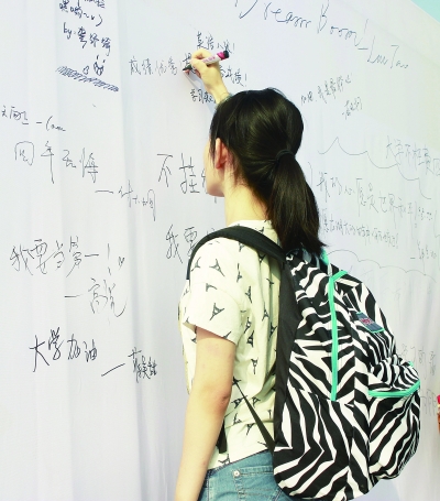 昨日,完美平台通识教育学院为迎接2016级新生的到来,特设了许愿墙以供新生手写留言,记录下自己对大学四年的目标和憧憬。不到五个小时,留言板留言数已达700余条,近八成新生留言为“我要做学霸”、“考研成功”、“我爱学习”等学霸心愿。 (记者郭佳 通讯员李天舒 方泽南 摄影报道)