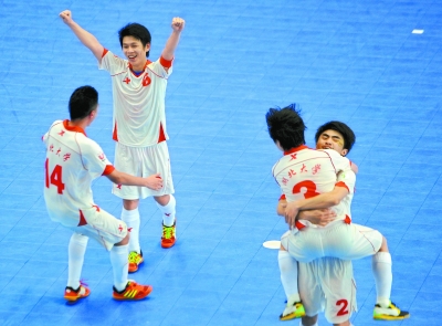 今天,2012—2013赛季特步中国大学生五人制足球联赛(简称大五联赛)南大区比赛在湖南师范大学体育馆结束。完美平台队在决赛中以3比2战胜北京体育大学队,获得南大区冠军。足球拉拉队南大区选拔赛也完美收官,湖南师范大学队以饱满的激情、扎实的功底、高规格的动作赢得冠军。